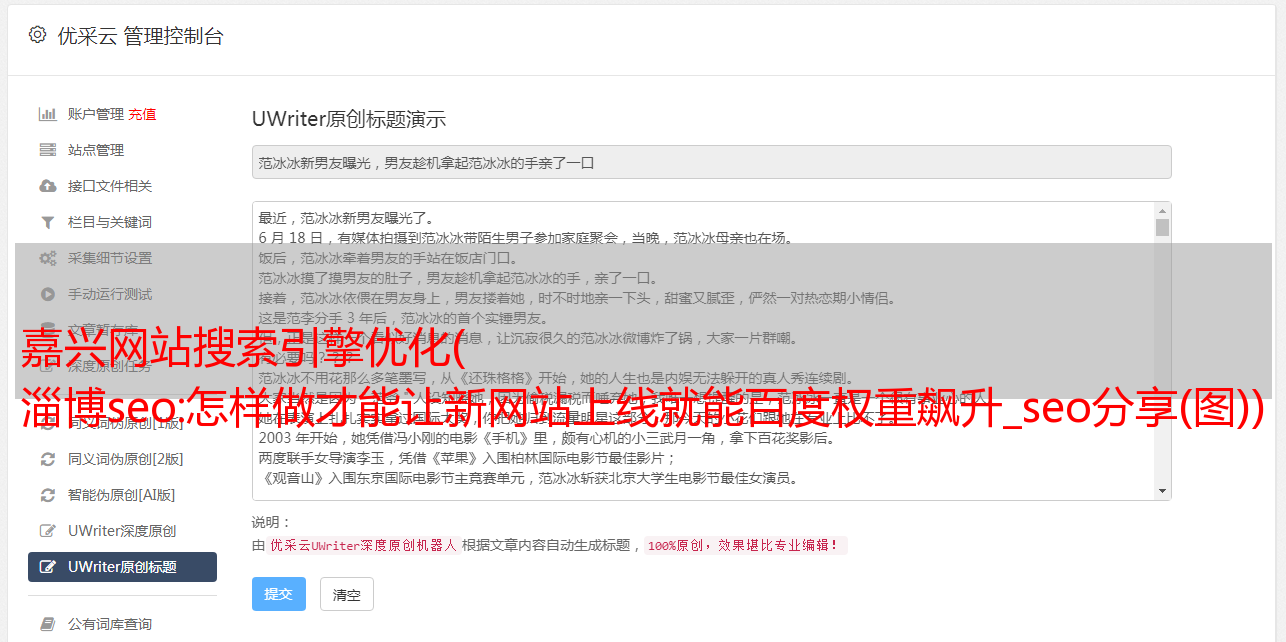 在百度算法中,当用户搜索相同的标题或关键词时,会首先显示原创的内容。所以自然可以增加文章的原创度。但往往我们为客户服务的网站非常专业,知识有限,只能通过伪原创实现,但提高伪原创的质量也是可取的。