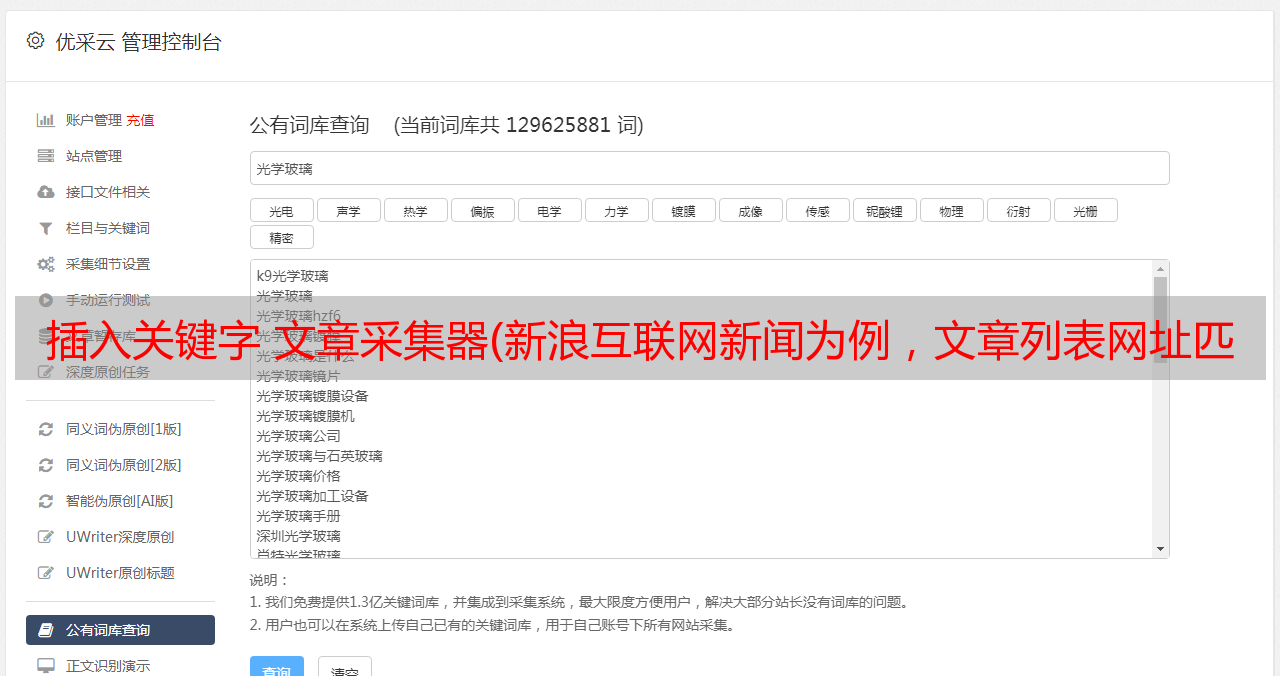 优采云 发布时间: 2022-03-01 15:00插入关键字 文章采集器(新浪互联网新闻为例,文章列表网址匹配规则的设置)