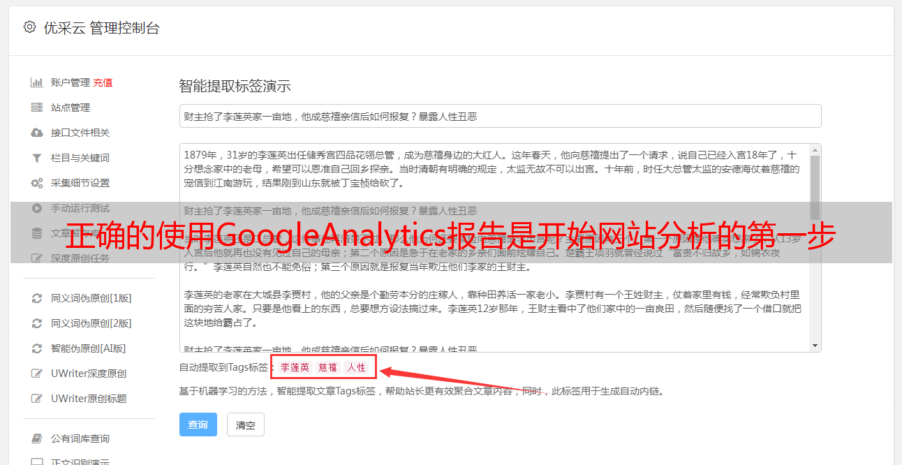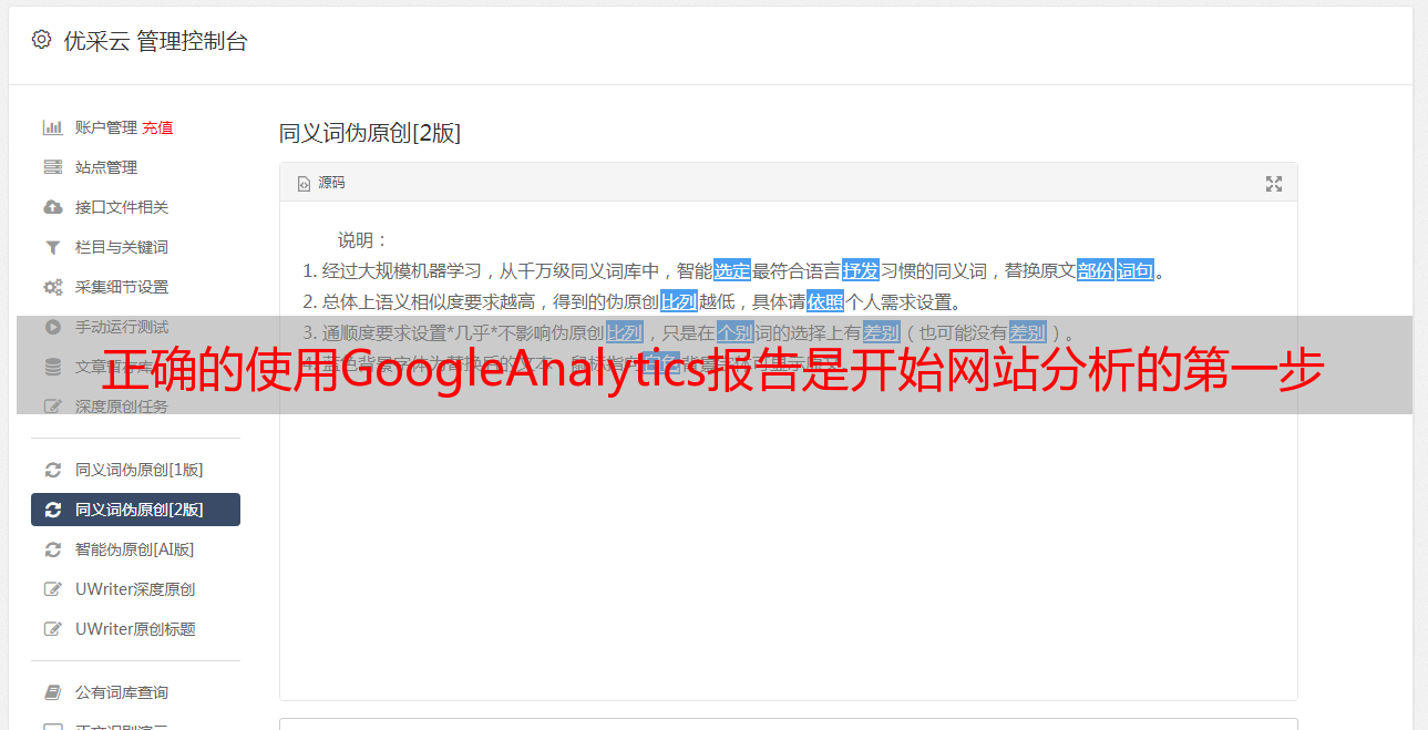 优采云 发布时间: 2021-05-06 18:17正确的使用GoogleAnalytics报告是开始网站分析的第一步