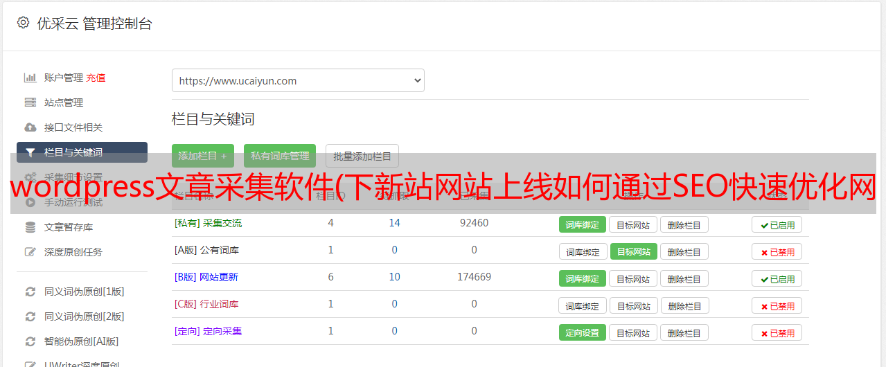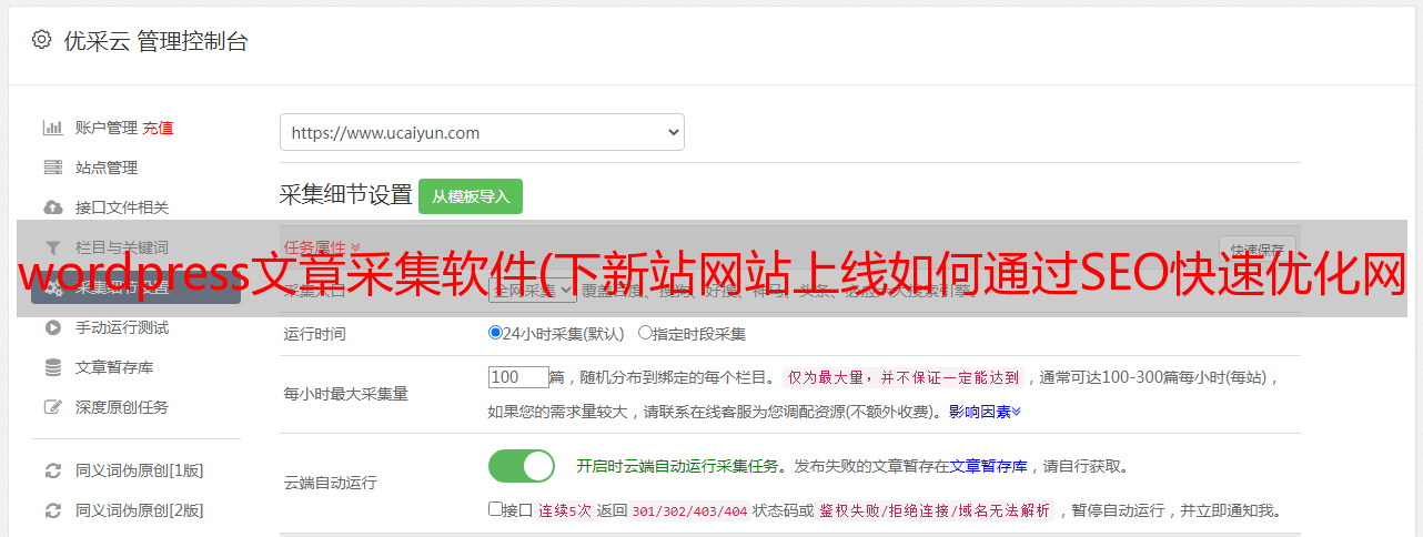 使用WordPresscms采集插件不需要很专业的技能,操作界面直观。具有网站数据查看、站点绑定(验证)推送、文章采集、伪原创、一键发布等功能。