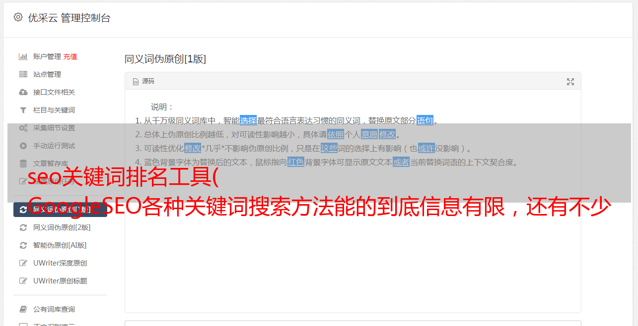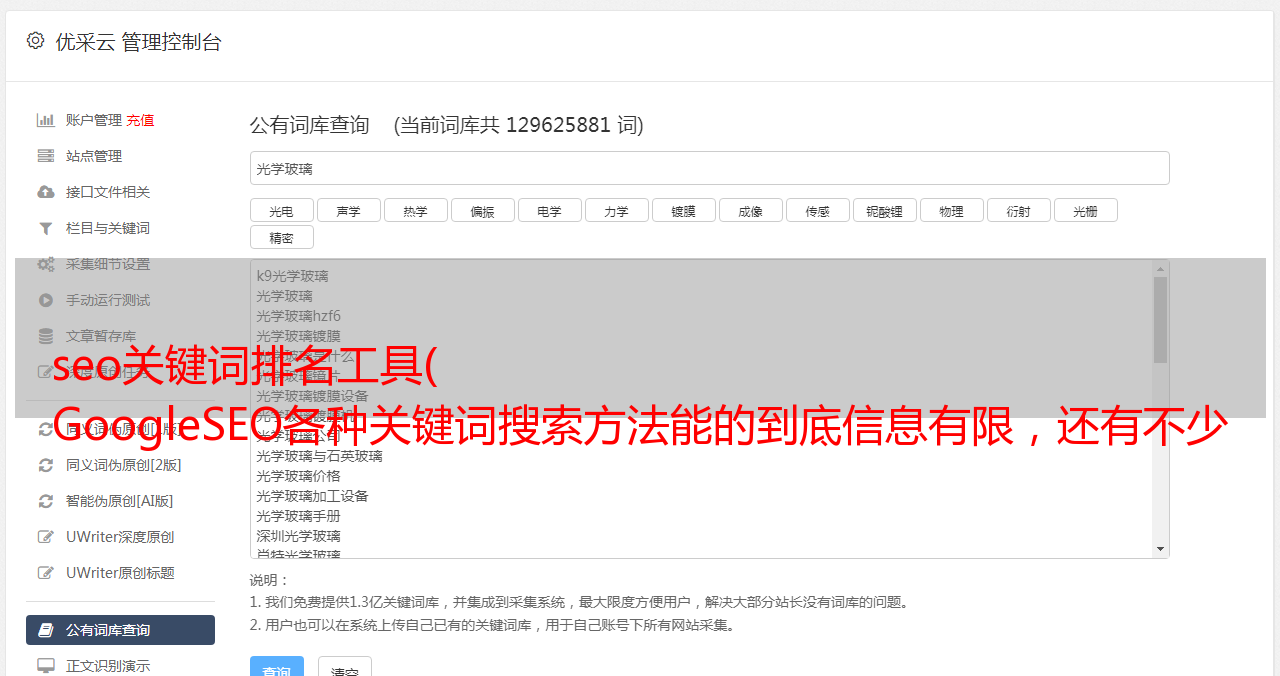 Google SEO 的各种关键词 搜索方法最终信息有限。为了得到最完整的关键词,在采集了一些主要关键词之后,你可以使用一些不同的小工具来辅助你进行关键词营销,除了谷歌三件套之外,还有很多简单易用的工具.
