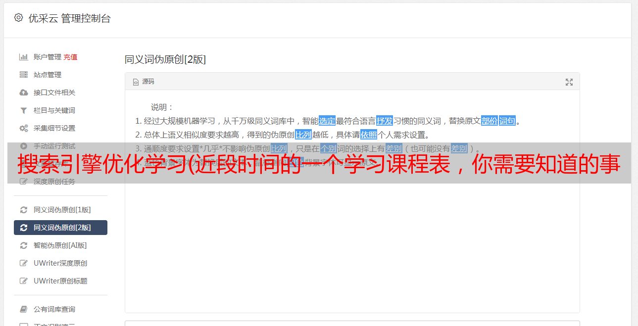 优采云 发布时间: 2022-03-02 05:06搜索引擎优化学习(近段时间的一个学习课程表,你需要知道的事!)