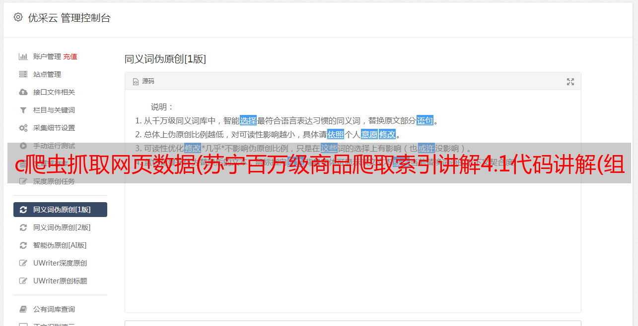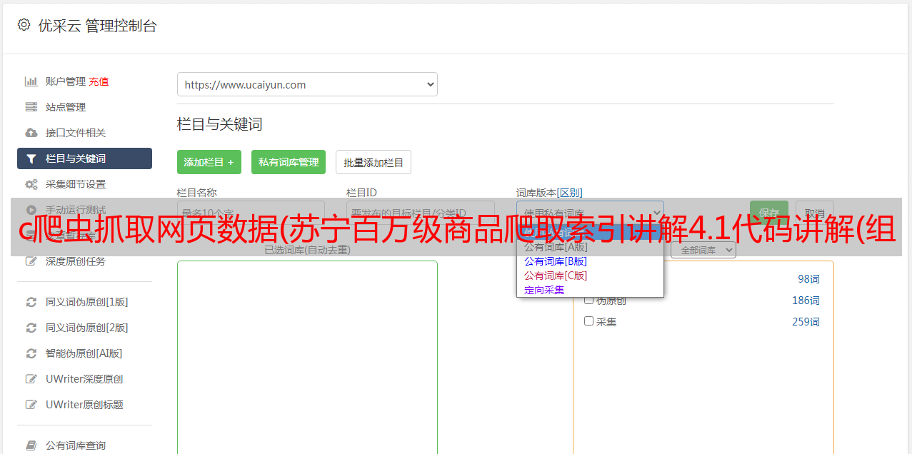优采云 发布时间: 2022-03-02 06:00c爬虫抓取网页数据(苏宁百万级商品爬取索引讲解4.1代码讲解(组图))