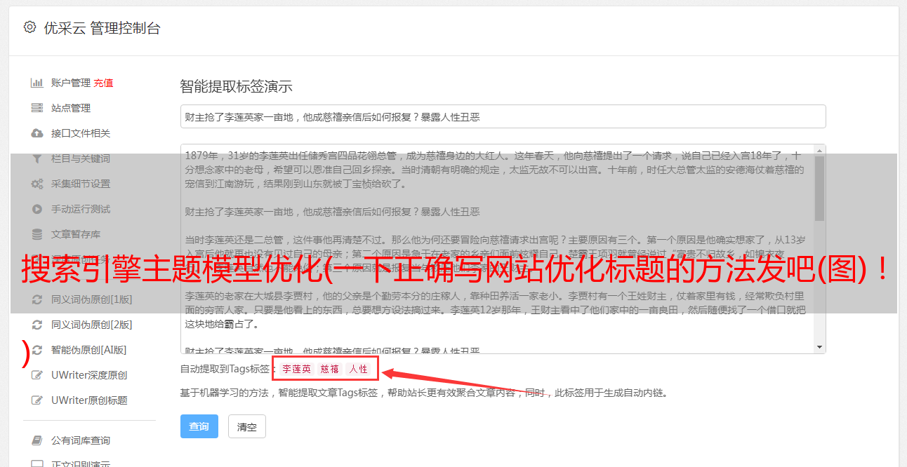 搜索引擎主题模型优化(一下正确写网站优化标题的方法发吧(图)! )