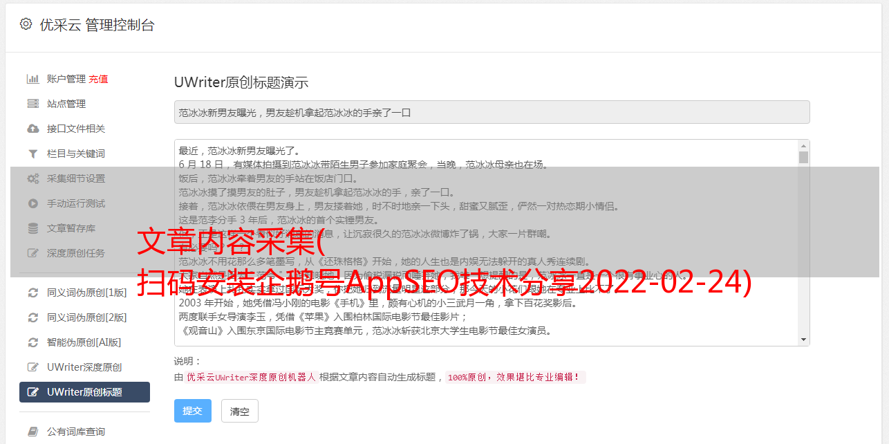 文章内容采集( 扫码安装企鹅号AppSEO技术分享2022-02-24)