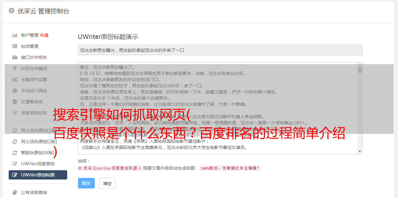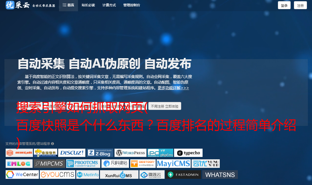 当我们在百度上搜索某个内容时,为什么会有这么多网站?它是如何被抓住的?为什么 网站 以这种形式存在于搜索结果中?百度截图是什么?(什么是百度快照?)让我们简单介绍一下百度排名的过程。