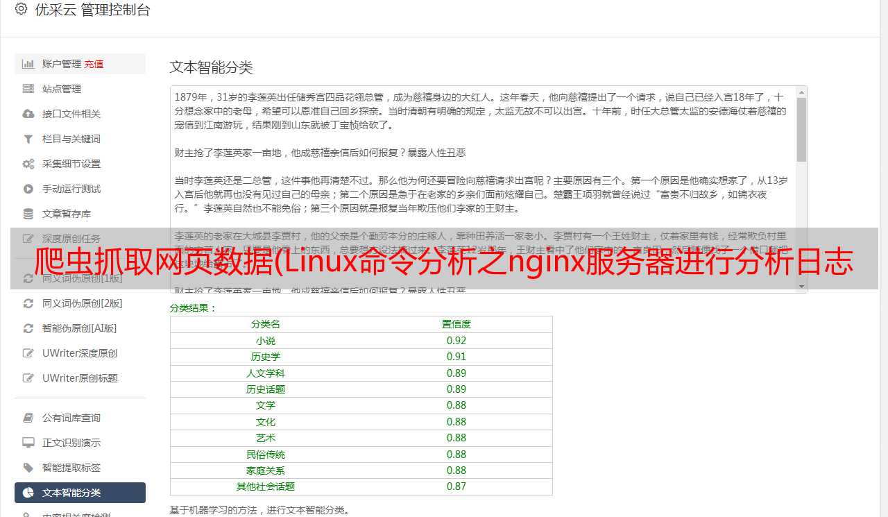 优采云 发布时间: 2022-03-02 17:00爬虫抓取网页数据(Linux命令分析之nginx服务器进行分析日志文件所在目录:)