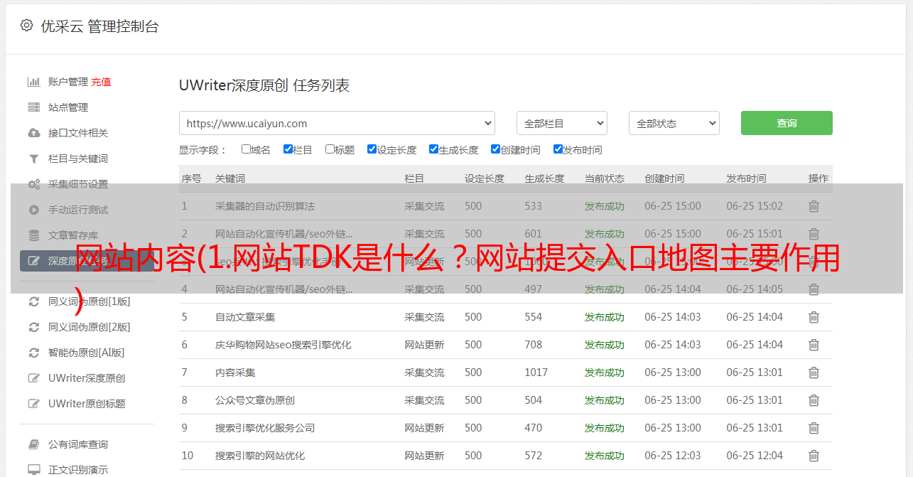 优采云 发布时间: 2022-03-02 17:19网站内容(1.网站TDK是什么?网站提交入口地图主要作用