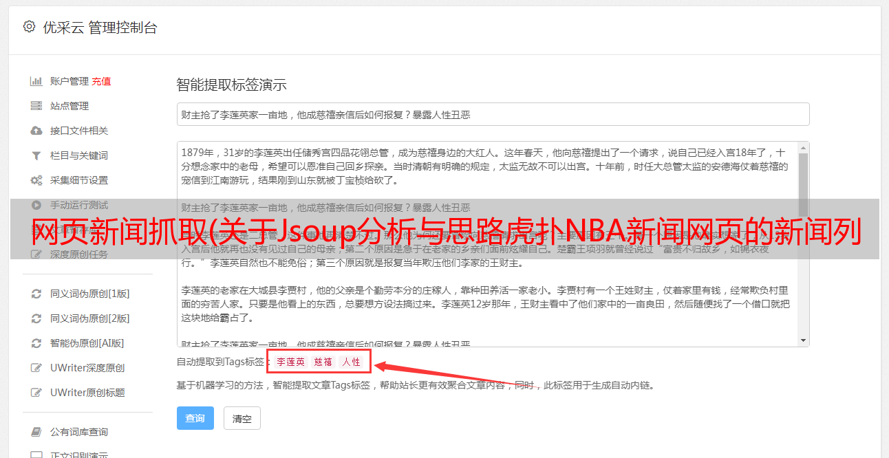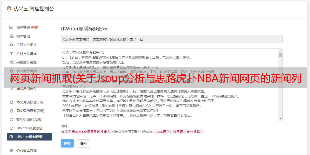 优采云 发布时间: 2022-03-02 19:26网页新闻抓取(关于Jsoup分析与思路虎扑NBA新闻网页的新闻列表)