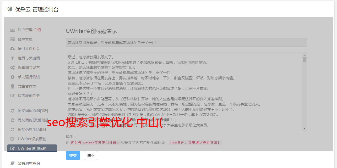 例如:成都价格,这样的标题,内容是SEO技术讲解,文章应该围绕标题展开,对于百度搜索引擎来说,更希望为用户提供搜索相关的内容,因此,满足用户的搜索需求成为排名能否上去的依据。此类错误的亮点在于单个内容中出现了不同的主题,并且为了收录关键词,将其制作成低质量的文章,而一个文章是针对多个关键词刻意优化,内容不符合用户需求,也不符合搜索引擎内容规则,正确使用搜索词是SEO必须要做的。