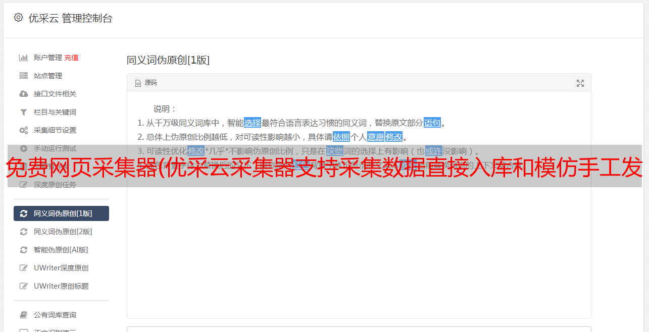 同义词、同义词替换、参数替换、伪原创必备技能。