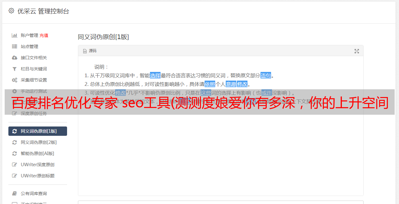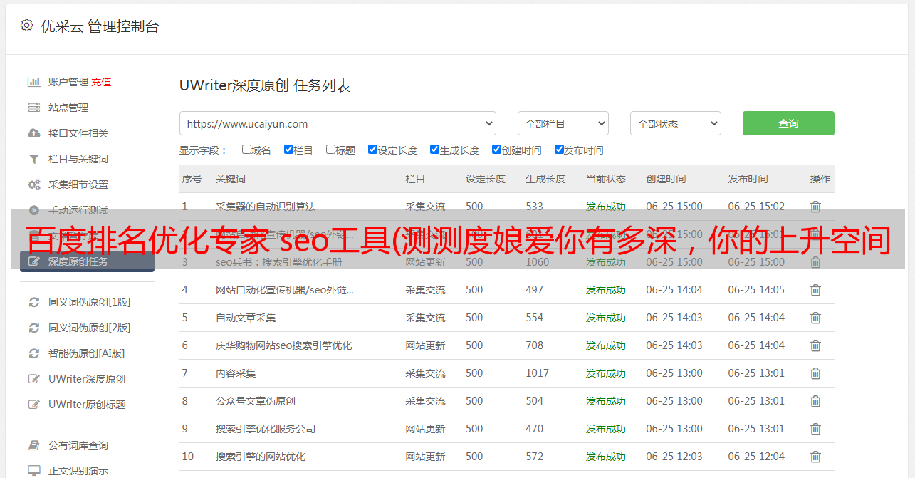 优采云 发布时间: 2022-03-03 05:16百度排名优化专家 seo工具(测测度娘爱你有多深,你的上升空间还有多少?)