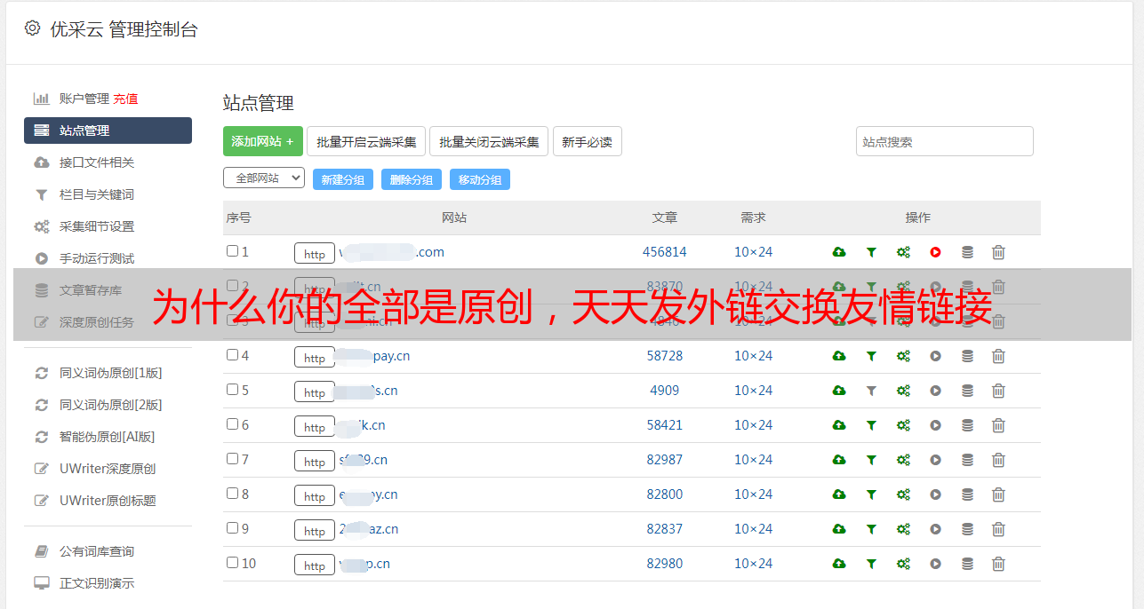 优采云 发布时间: 2021-05-06 23:24为什么你的全部是原创,天天发外链交换友情链接