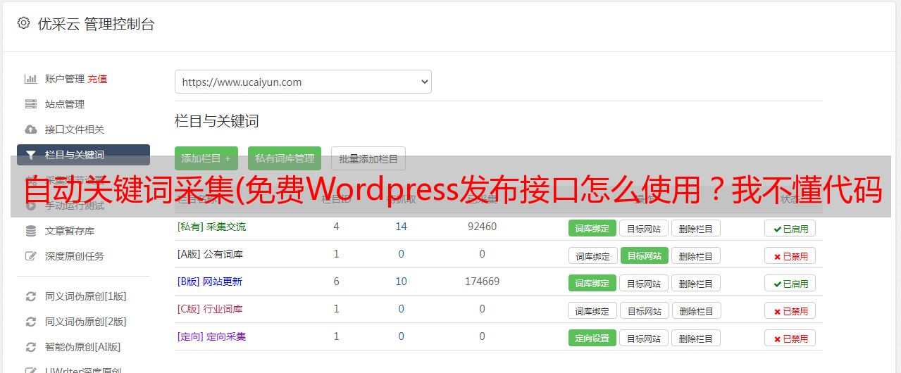 优采云 发布时间: 2022-03-03 12:07自动关键词采集(免费Wordpress发布接口怎么使用?我不懂代码多久可以学会啊?