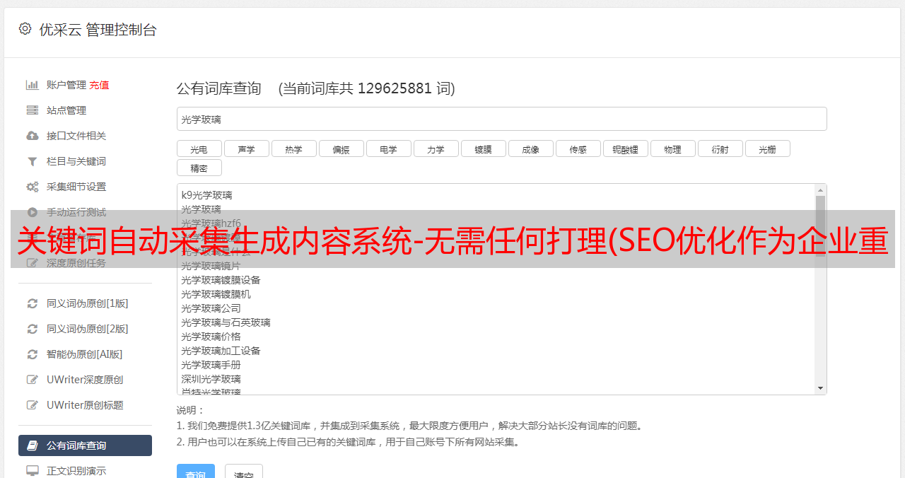 优采云 发布时间: 2022-03-03 13:18关键词自动采集生成内容系统-无需任何打理(SEO优化作为企业重要的市场营销网络推广手段
