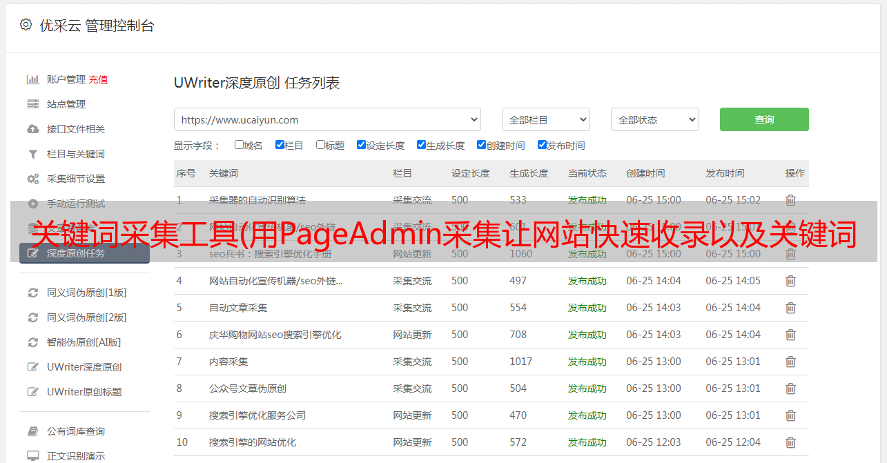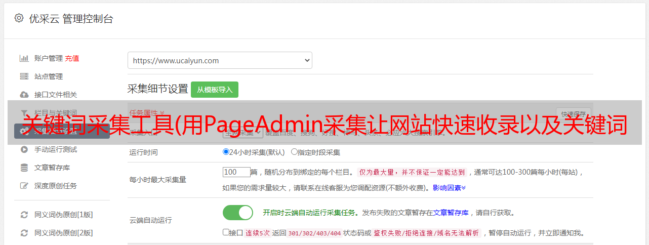 优采云 发布时间: 2022-03-03 19:02关键词采集工具(用PageAdmin采集让网站快速收录以及关键词排名的基础工作)