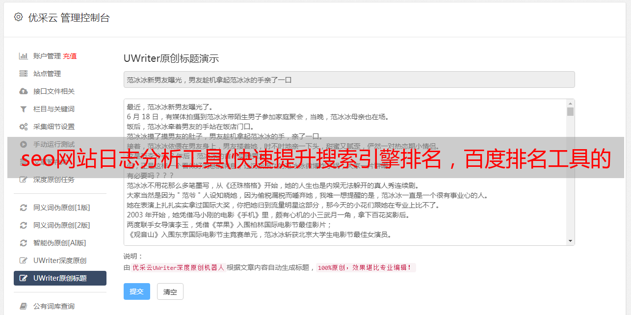 优采云 发布时间: 2022-03-03 19:12seo网站日志分析工具(快速提升搜索引擎排名,百度排名工具的进度和后果!)