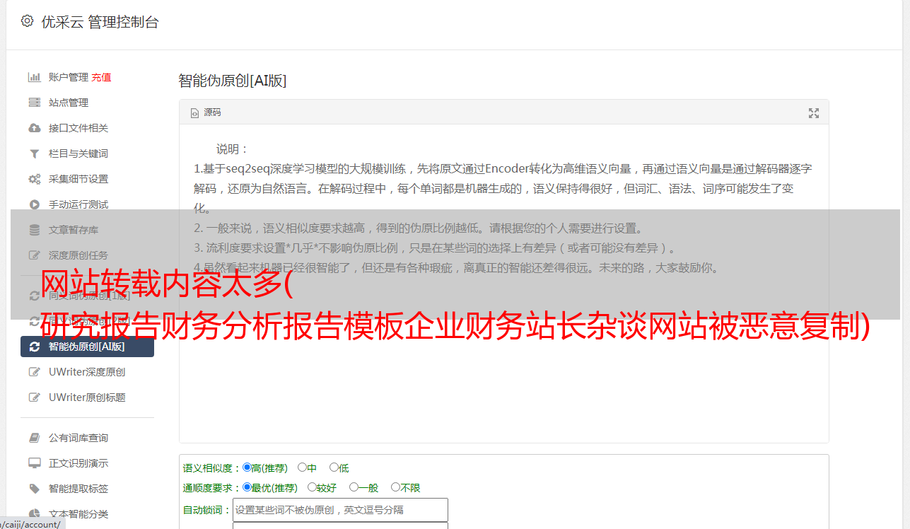 网站转载内容太多( 研究报告财务分析报告模板企业财务站长杂谈网站被恶意复制)