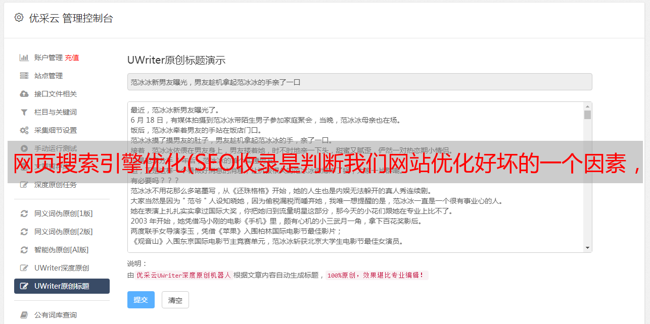 优采云 发布时间: 2022-03-03 22:21网页搜索引擎优化(SEO收录是判断我们网站优化好坏的一个因素,博主