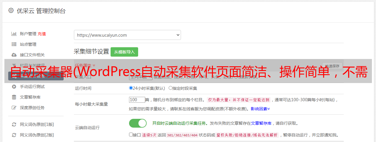 自动采集器(WordPress自动采集软件页面简洁、操作简单,不需要掌握专业的规则配置 )