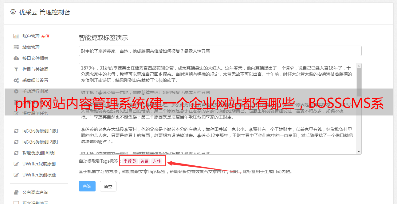 优采云 发布时间: 2022-03-04 04:10php网站内容管理系统(建一个企业网站都有哪些,BOSSCMS系统十大特点优势)
