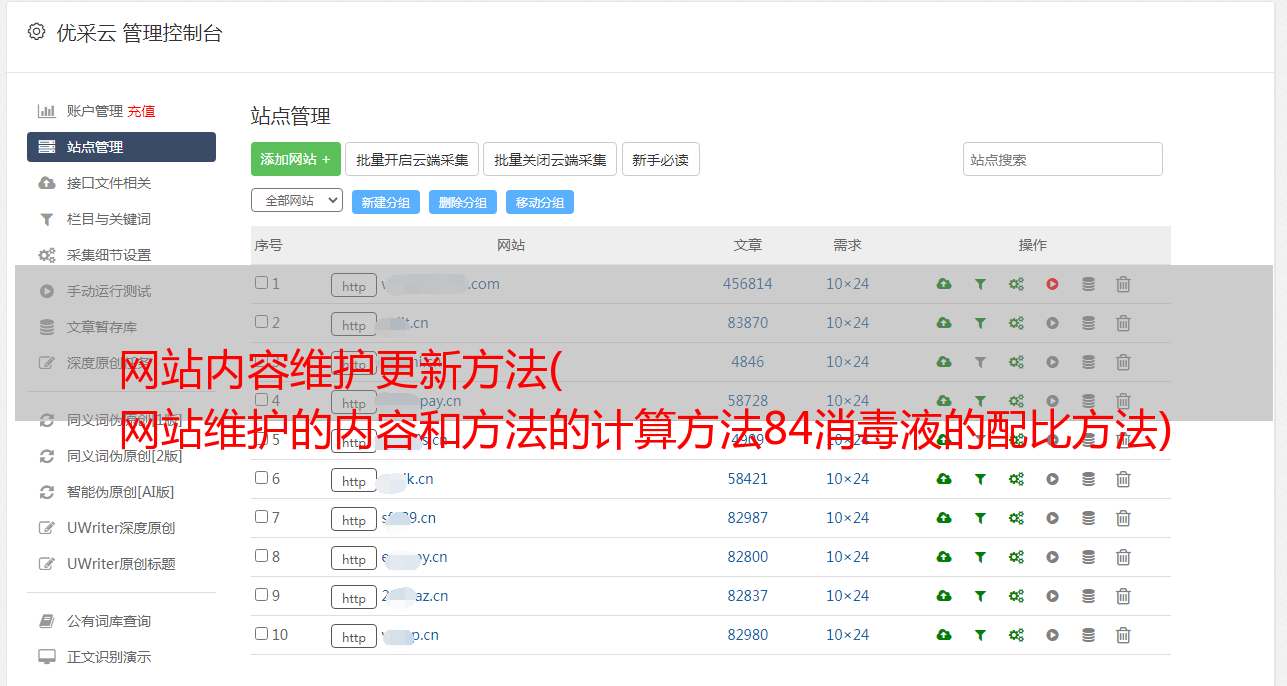 网站内容维护更新方法( 网站维护的内容和方法的计算方法84消毒液的配比方法)