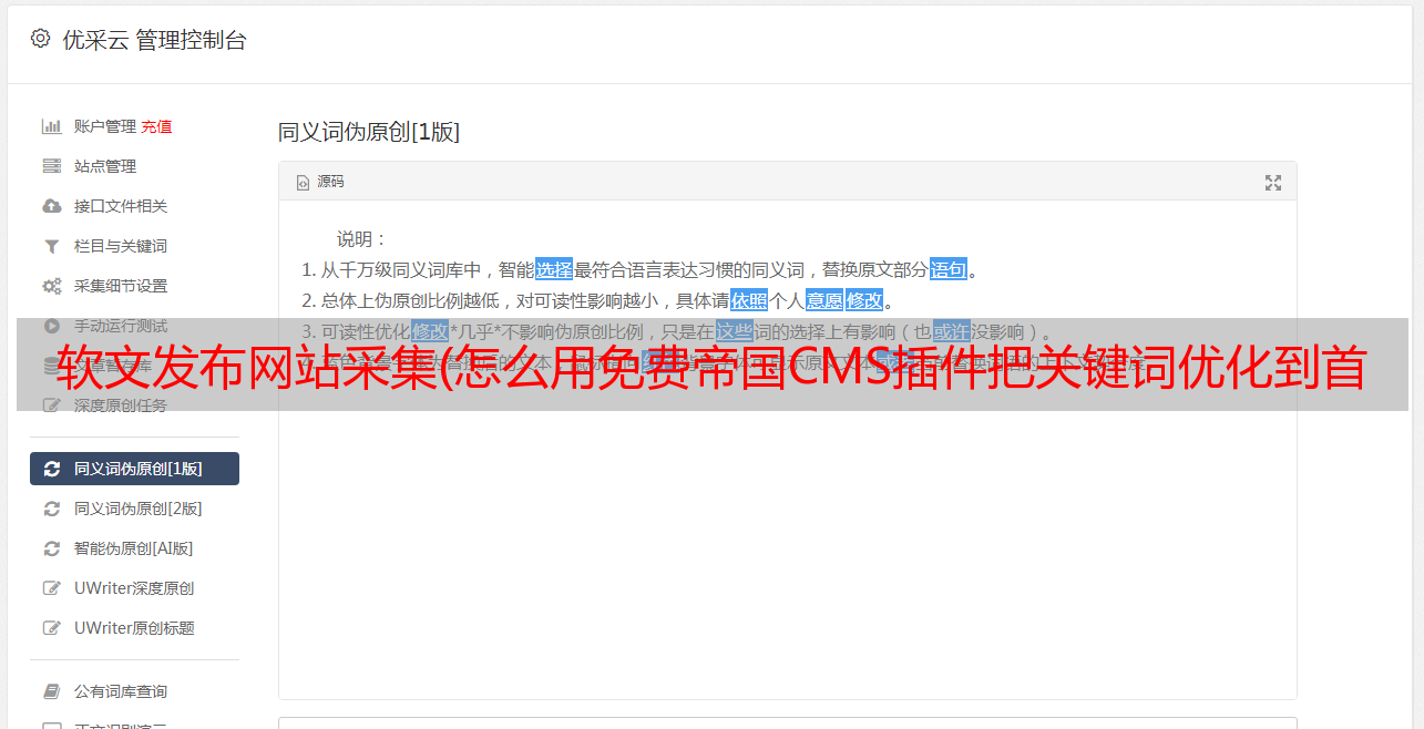 优采云 发布时间: 2022-03-04 07:11软文发布网站采集(怎么用免费帝国CMS插件把关键词优化到首页让网站能快速收录)