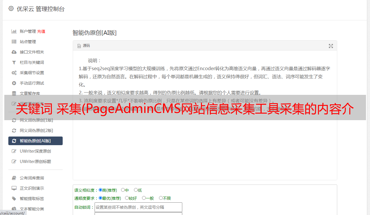 关键词 采集(PageAdminCMS网站信息采集工具采集的内容介绍及注意事项)