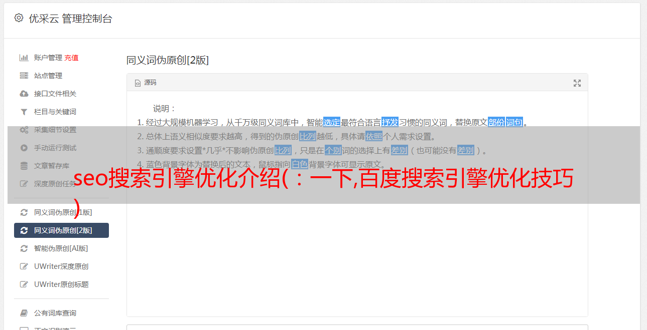 优采云 发布时间: 2022-03-04 09:25seo搜索引擎优化介绍(:一下,百度搜索引擎优化技巧