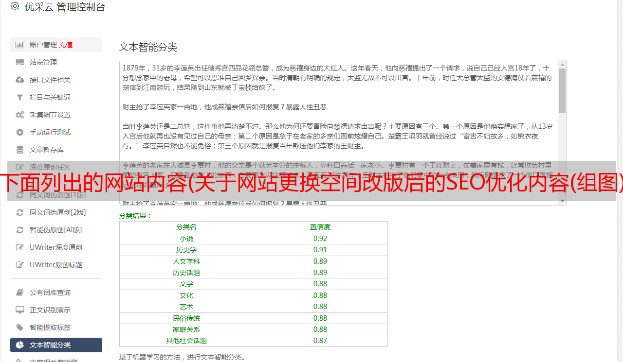 下面列出的网站内容(关于网站更换空间改版后的SEO优化内容(组图) )