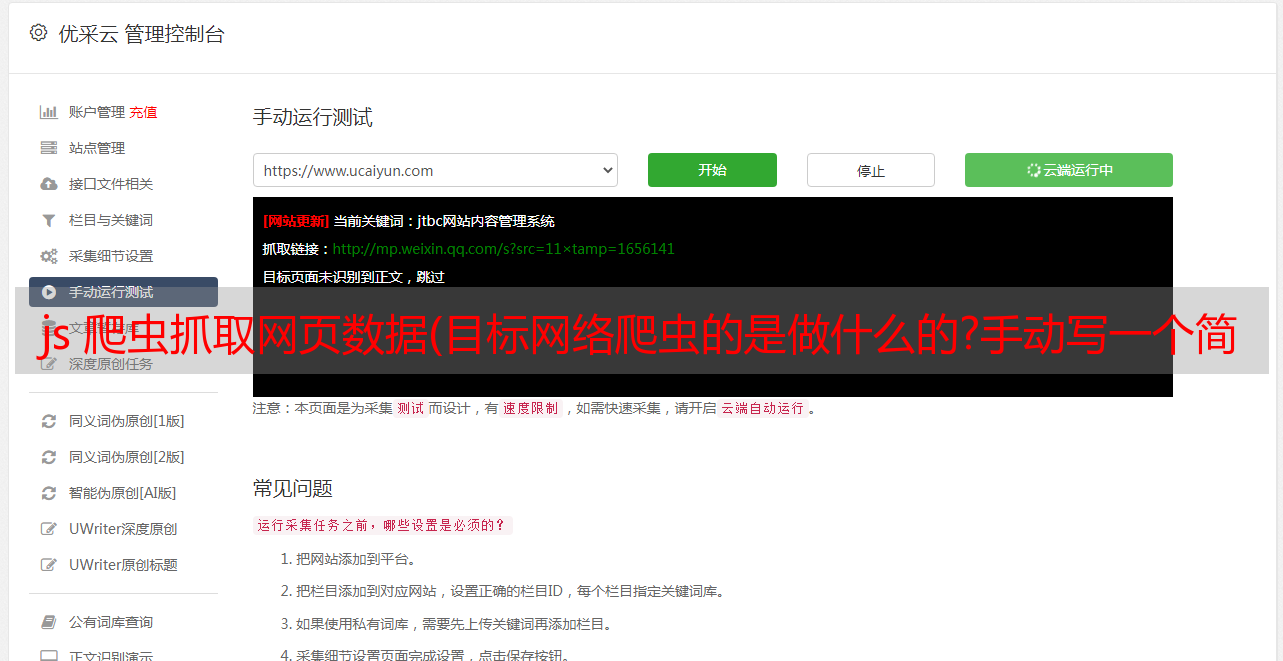 优采云 发布时间: 2022-03-04 11:19js 爬虫抓取网页数据(目标网络爬虫的是做什么的?手动写一个简单)