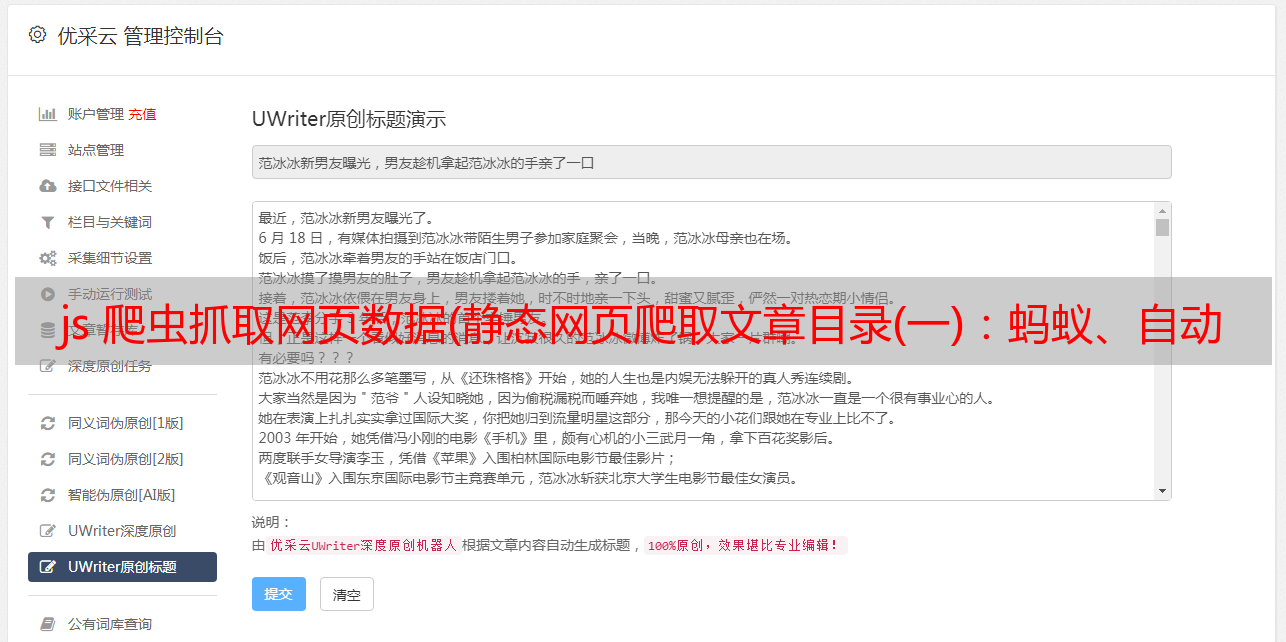 js 爬虫抓取网页数据(静态网页爬取文章目录(一):蚂蚁、自动索引、模拟程序或者蠕虫)
