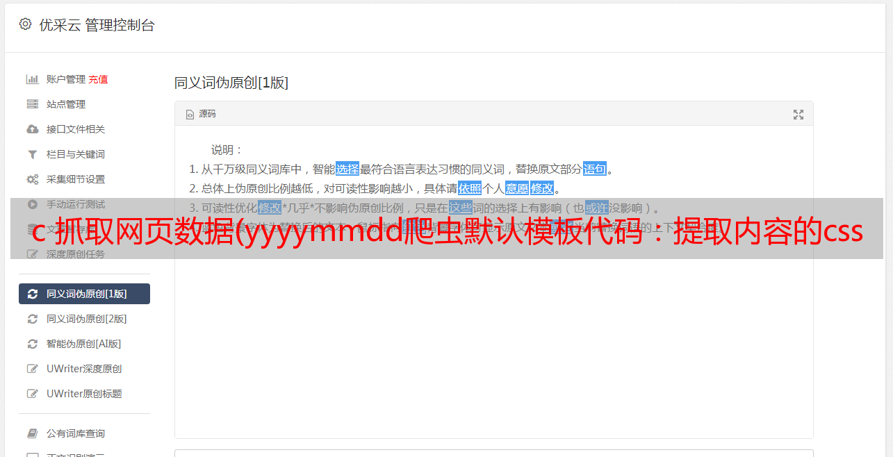 优采云 发布时间: 2022-03-04 12:15c 抓取网页数据(yyyymmdd爬虫默认模板代码:提取内容的css一行的方法)