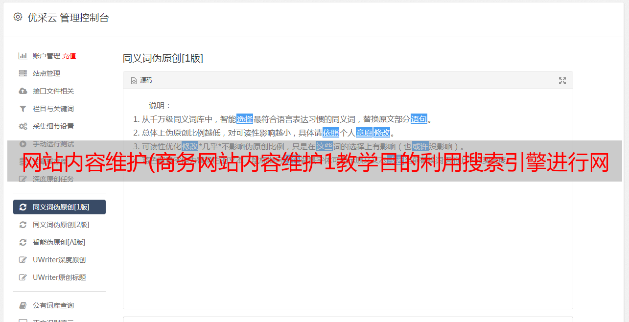 优采云 发布时间: 2022-03-04 13:21网站内容维护(商务网站内容维护1教学目的利用搜索引擎进行网络商务信息收集)
