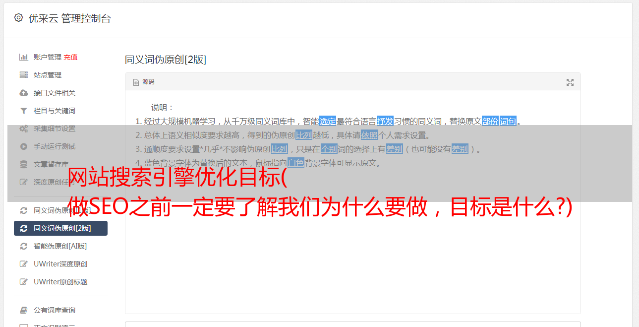 优采云 发布时间: 2022-03-04 17:19网站搜索引擎优化目标(