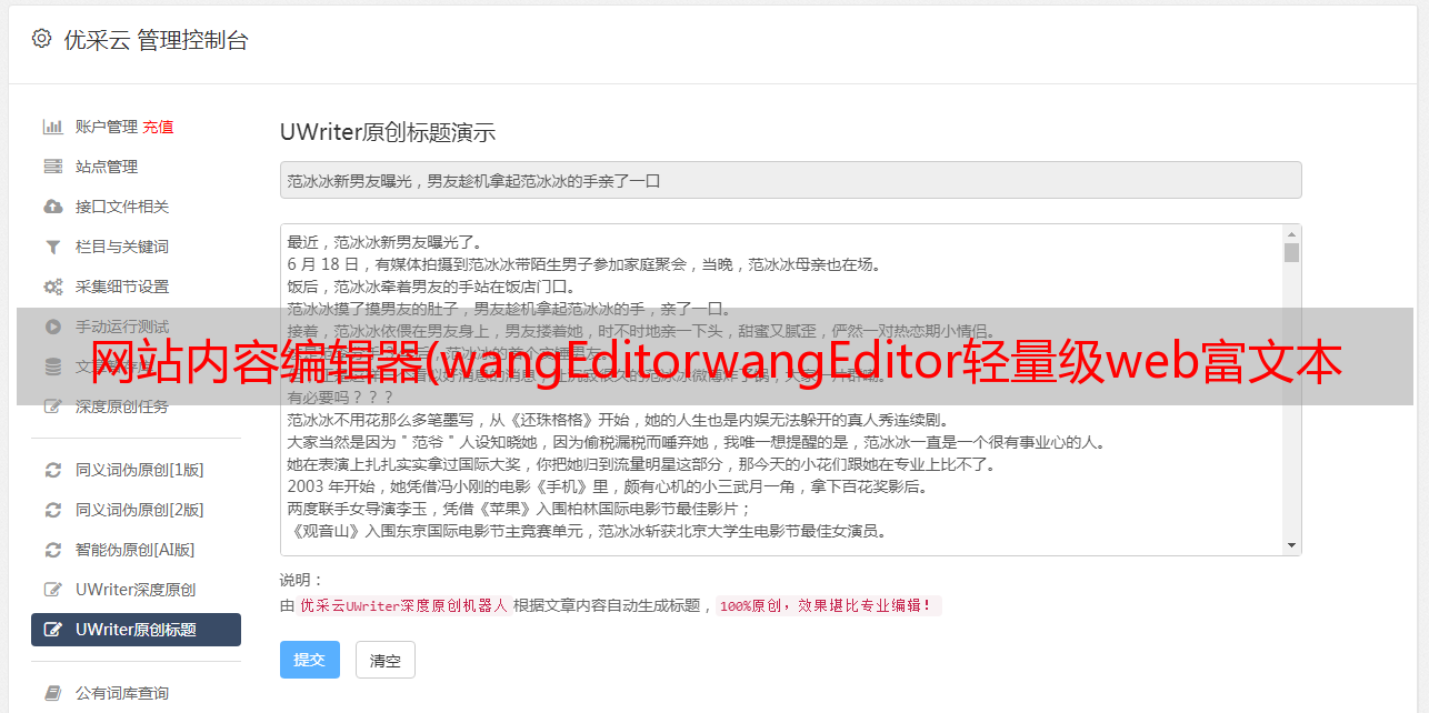 优采云 发布时间: 2022-03-04 18:13网站内容编辑器(wangEditorwangEditor轻量级web富文本编辑器,配置方便,使用简单!)