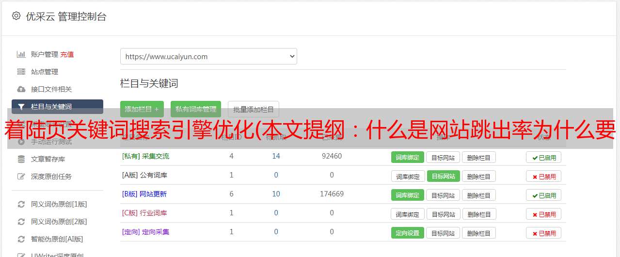 优采云 发布时间: 2022-03-05 01:01着陆页关键词搜索引擎优化(本文提纲:什么是网站跳出率为什么要降低(组图))