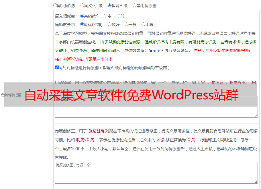 4、伪原创保留字(当文章原创未被伪原创使用时设置核心字)