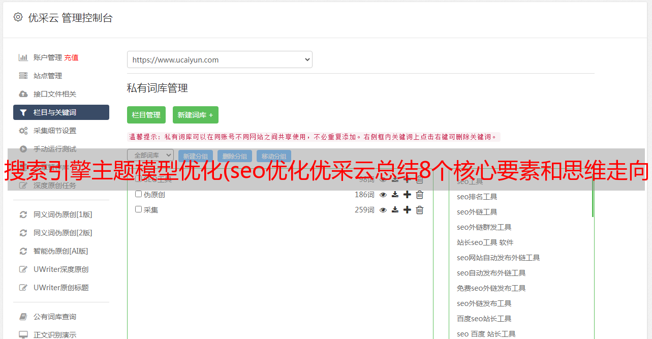 搜索引擎主题模型优化(seo优化优采云总结8个核心要素和思维走向(图))