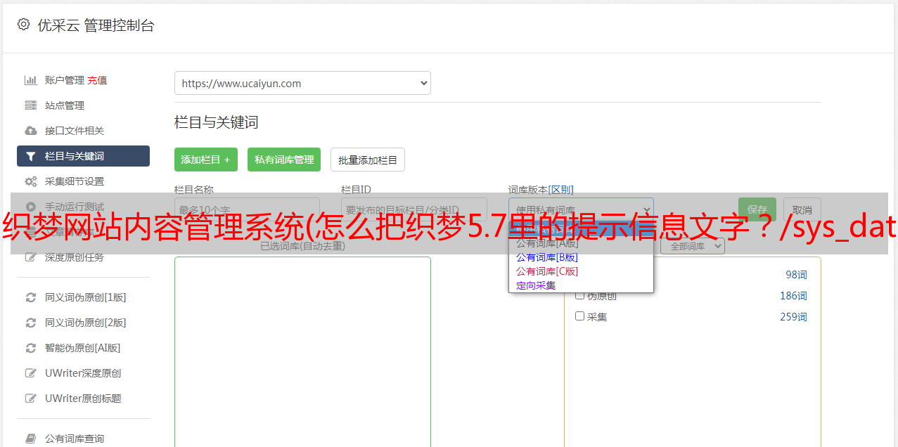 织梦网站内容管理系统(怎么把织梦5.7里的提示信息文字?/sys_data_php)