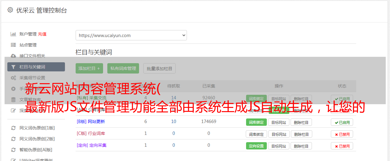 新云网站内容管理系统( 最新版JS文件管理功能全部由系统生成JS自动生成,让您的站点版式自由改变)