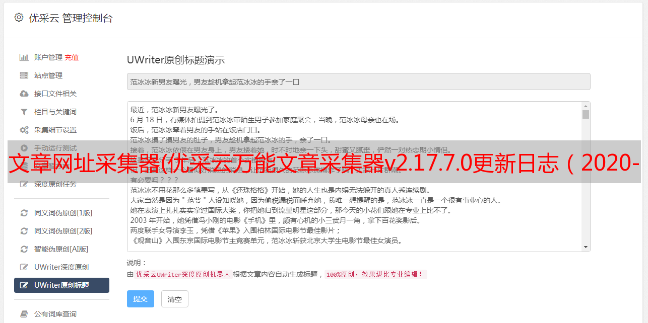 文章网址采集器(优采云万能文章采集器v2.17.7.0更新日志(2020-4-8))