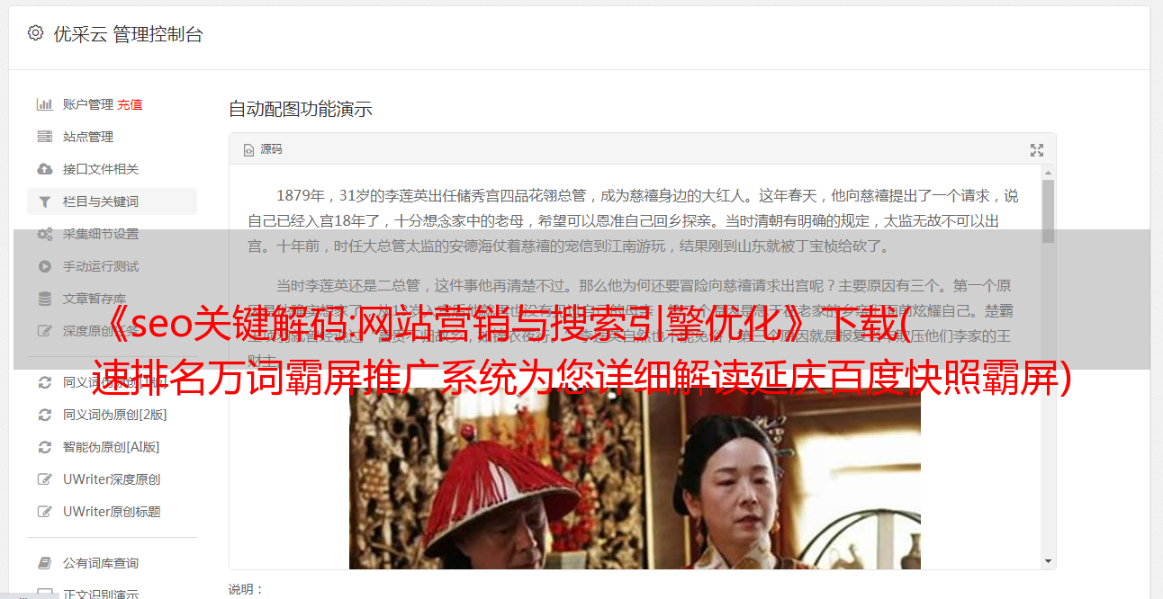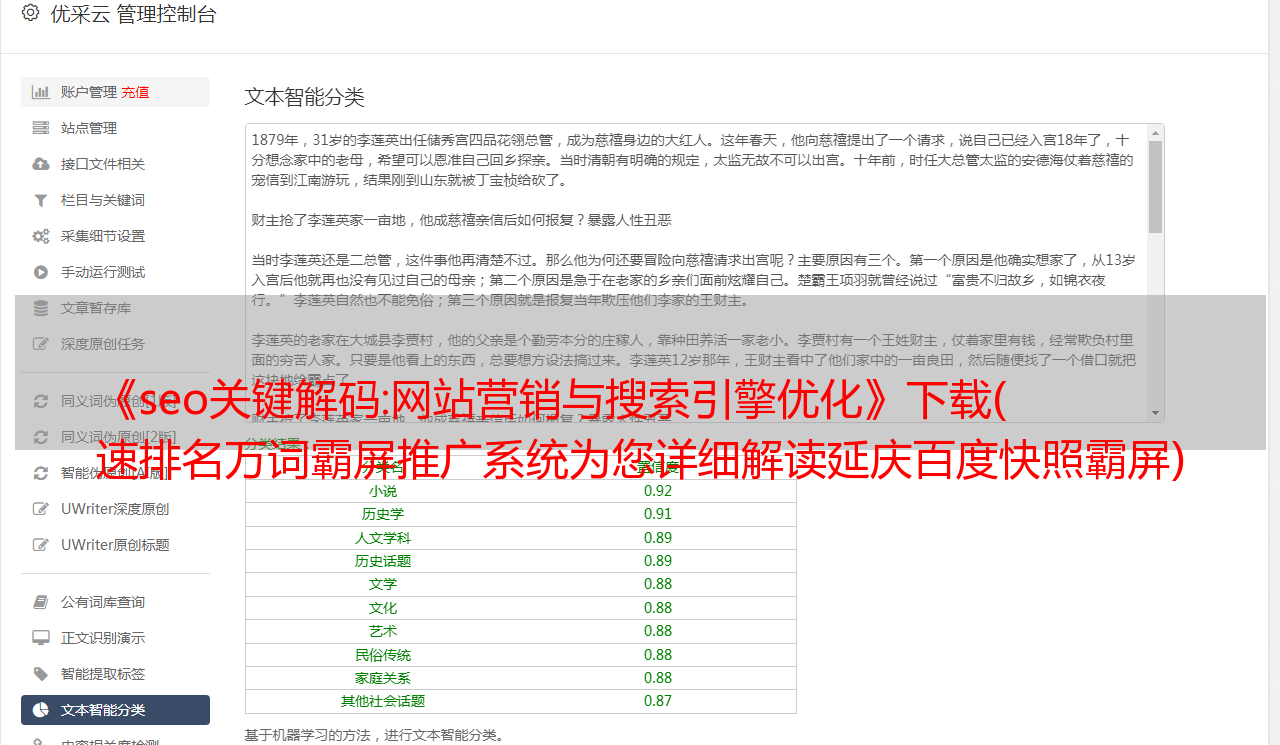 《seo关键解码:网站营销与搜索引擎优化》下载( 速排名万词霸屏推广系统为您详细解读延庆百度快照霸屏)