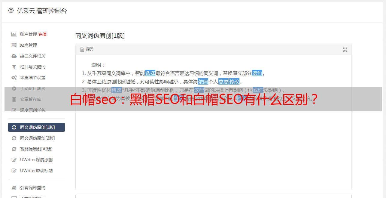 优采云 发布时间: 2021-05-07 20:26白帽seo:黑帽SEO和白帽SEO有什么区别?