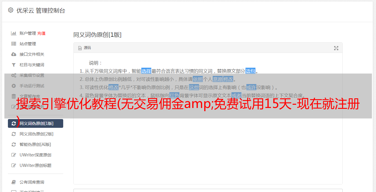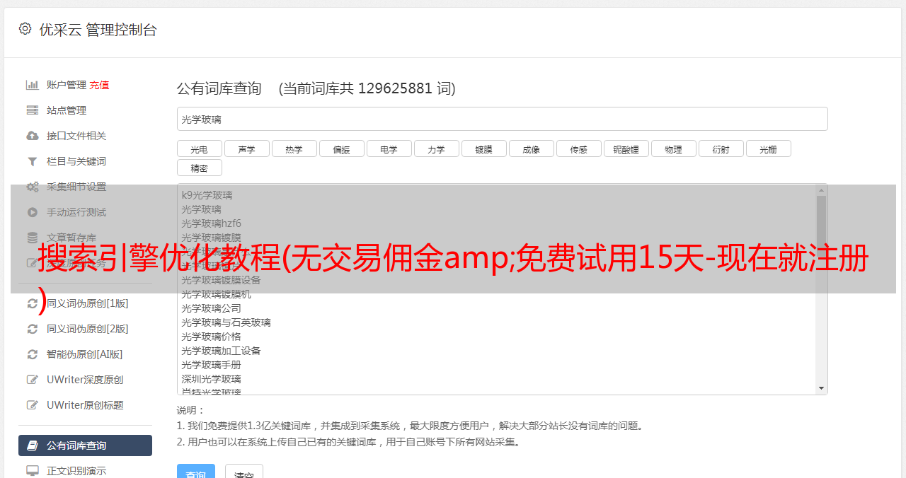 优采云 发布时间: 2022-03-06 18:04搜索引擎优化教程(无交易佣金amp;免费试用15天-现在就注册