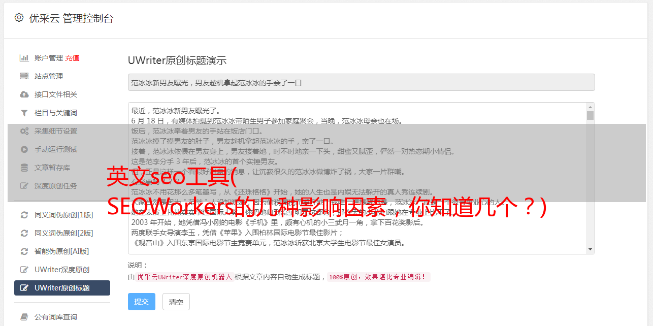 优采云 发布时间: 2022-03-06 18:14英文seo工具(