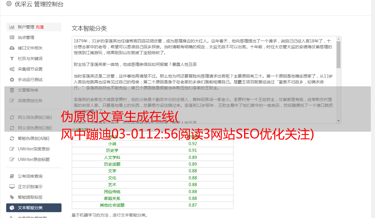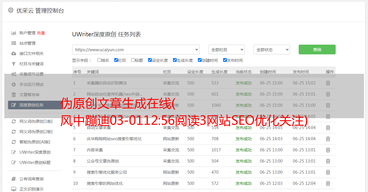 3、优采云伪原创:优采云是基于AI技术的智能内容创作平台。使用NLP中文词库和语言模型人工智能修改原创文章生成伪原创。