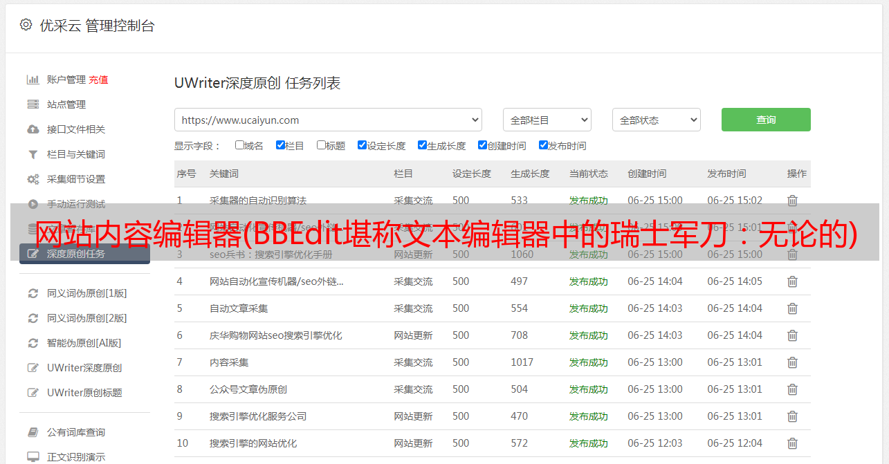 优采云 发布时间: 2022-03-07 01:23网站内容编辑器(BBEdit堪称文本编辑器中的瑞士*敏*感*词*:无论的)