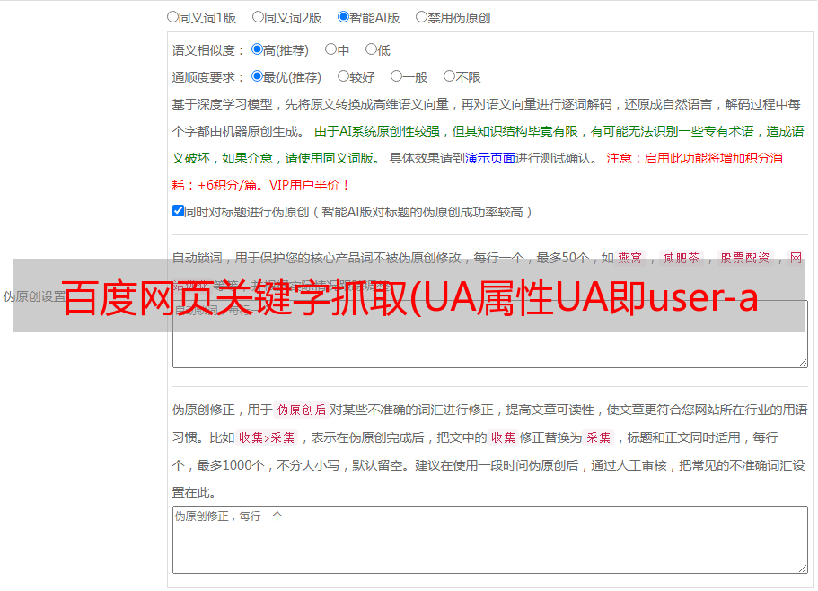 百度网页关键字抓取(UA属性UA即user-agent,百度搜索引擎原则及调整方法)