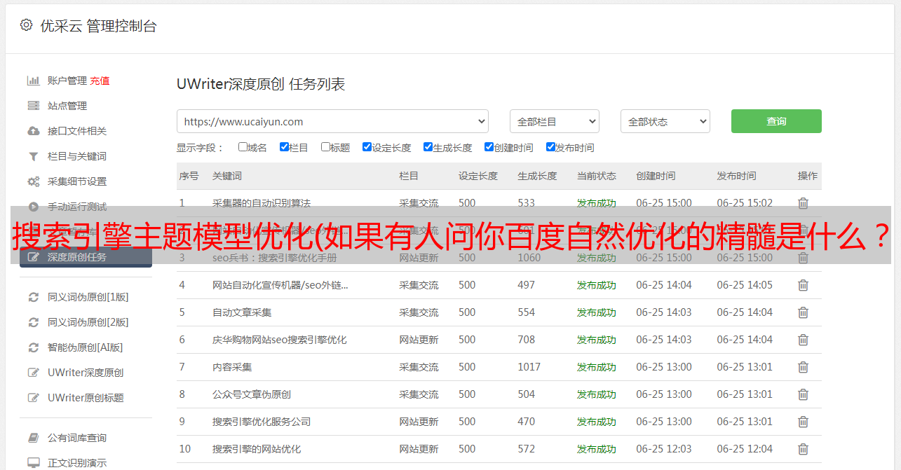 优采云 发布时间: 2022-03-07 05:23搜索引擎主题模型优化(如果有人问你百度自然优化的精髓是什么?(图))